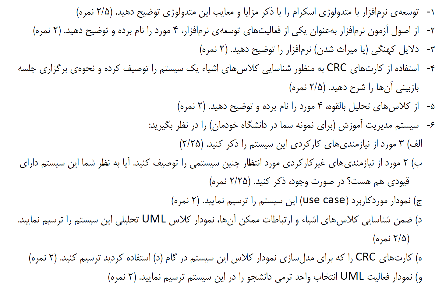 تاریخ امتحان: 20 بهمن، ساعت 11